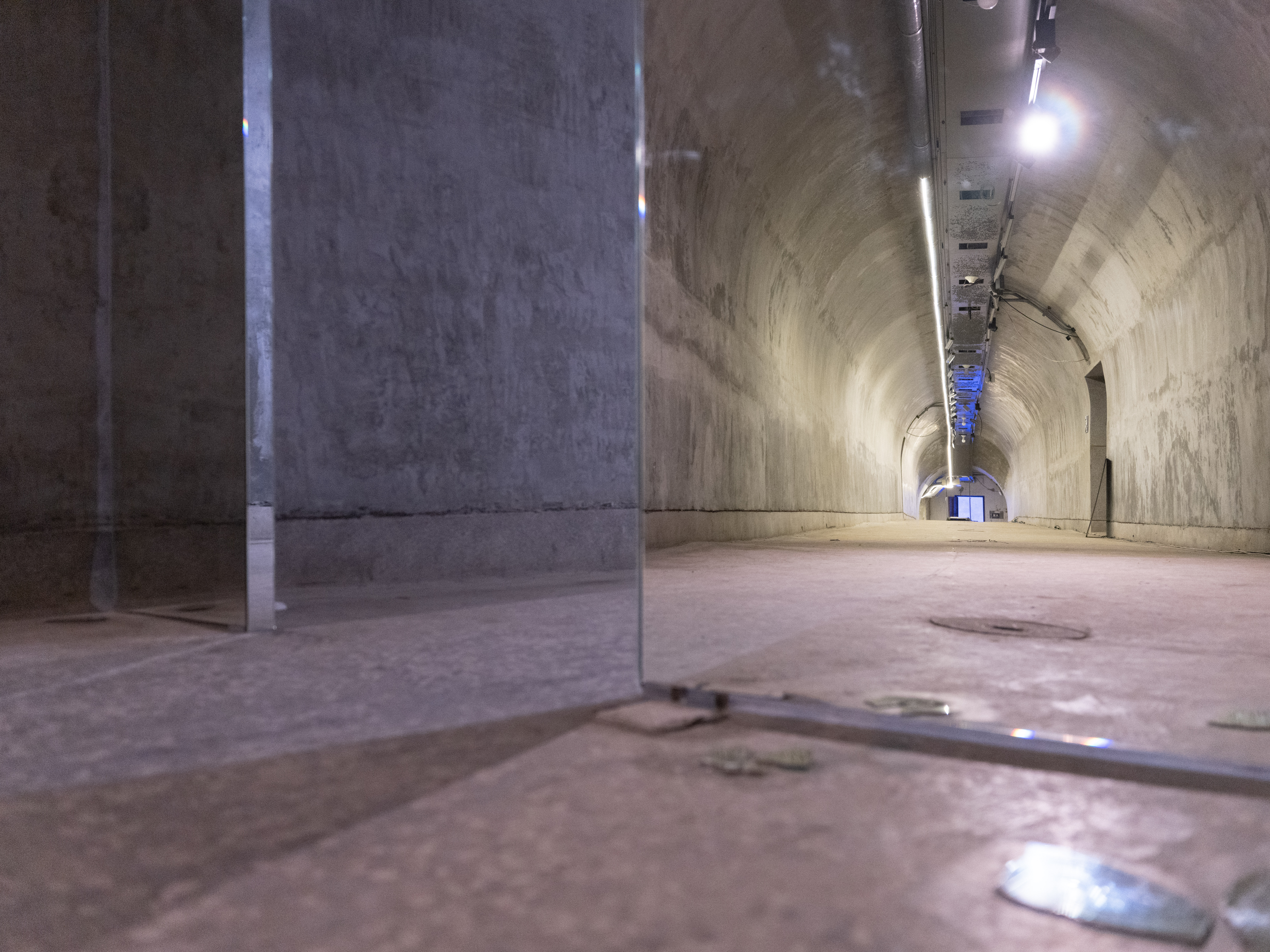 ・濕氣、霉味與悶響聲,坑道連接了一處位置與另一處位置,而坑道的位置又在哪呢?穿行在入口與出口之間的移動彷彿向前也是向後,時間好像在通道中懸停,它以什麼樣的狀態停留在坑道內?我試圖描繪坑道中的某個片刻切面,而它既是此處也在別處。